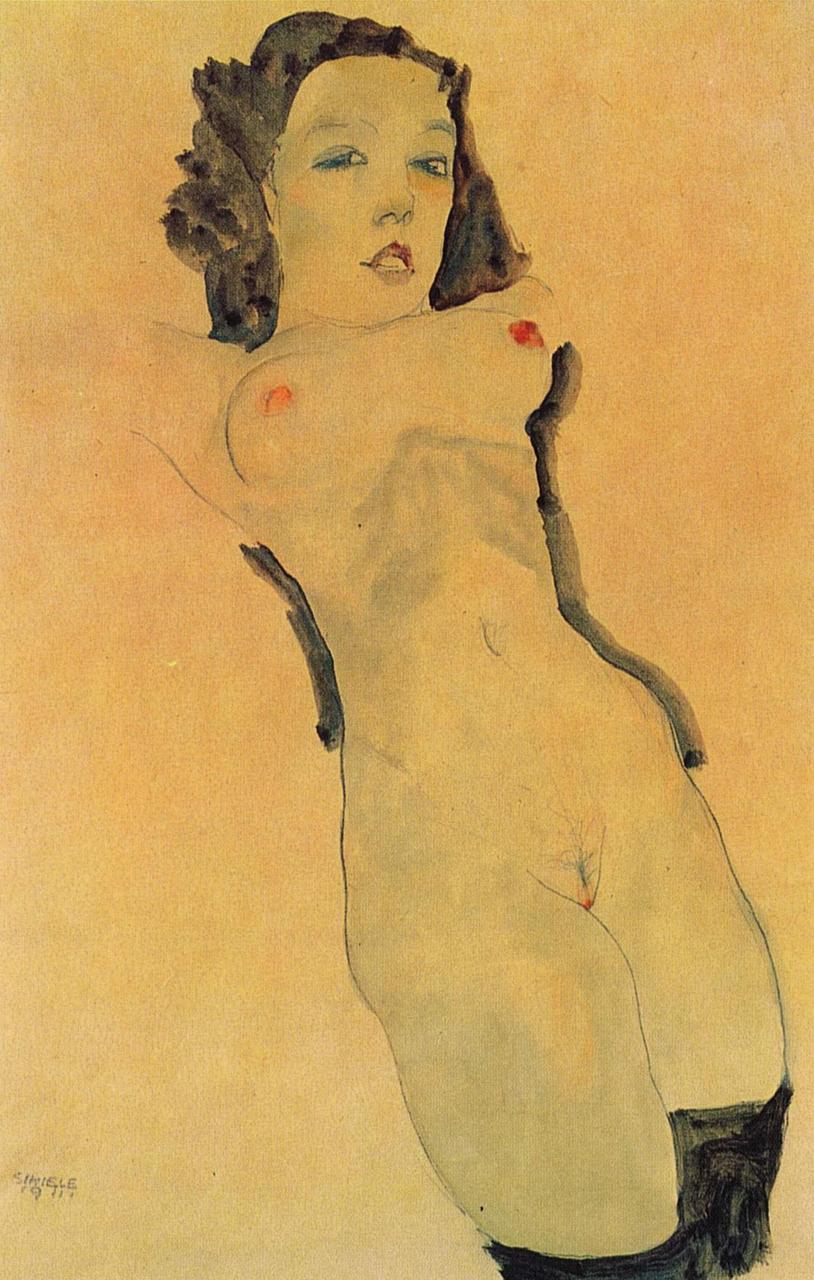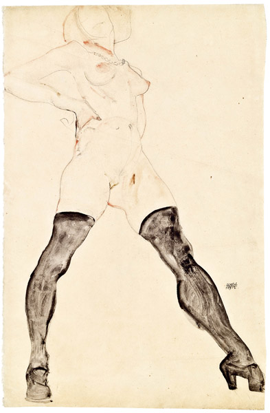 Egon Schiele- “Nude with Stockings,” 1912, gouache and pencil on paper
