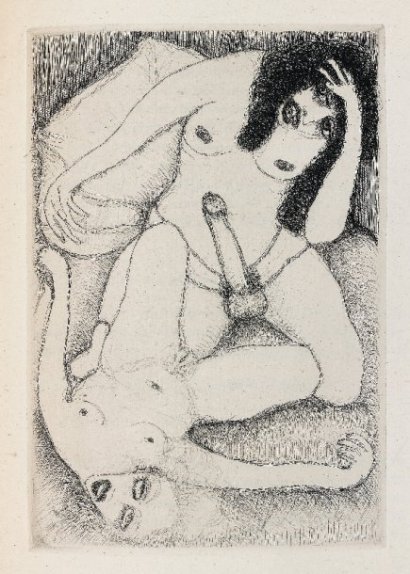 Illustration (Eau-Forte ) de, (compagne du peintre Frans de Geetere), pour  » Gamiani ou deux nuits d’excès » d’ Alfred de Musset ed°1927 ( premiere publication du receuil 1833)