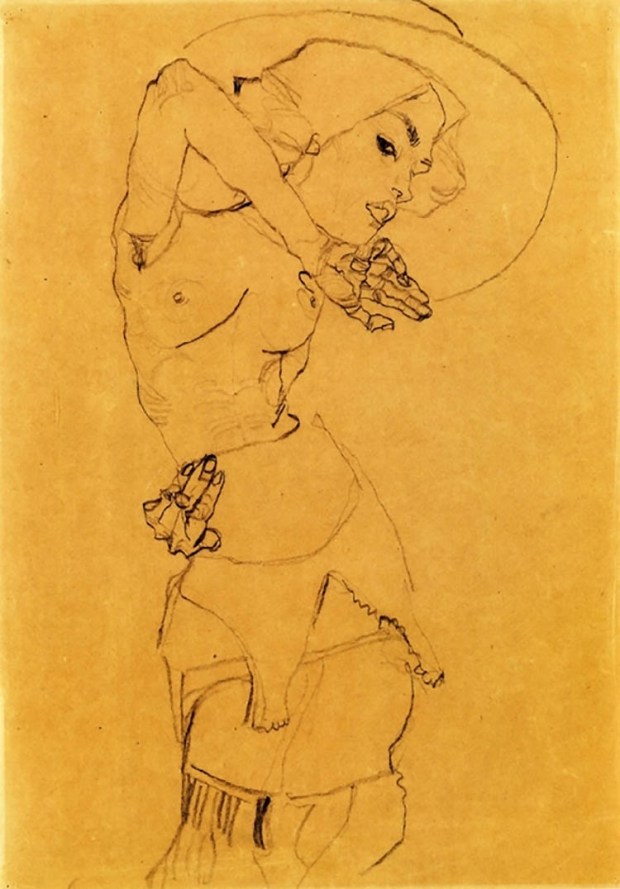 Egon Schiele – Stehender Akt mit Hut Große (Standing Nude with Large Hat), model Gertrude Schiele, 1910