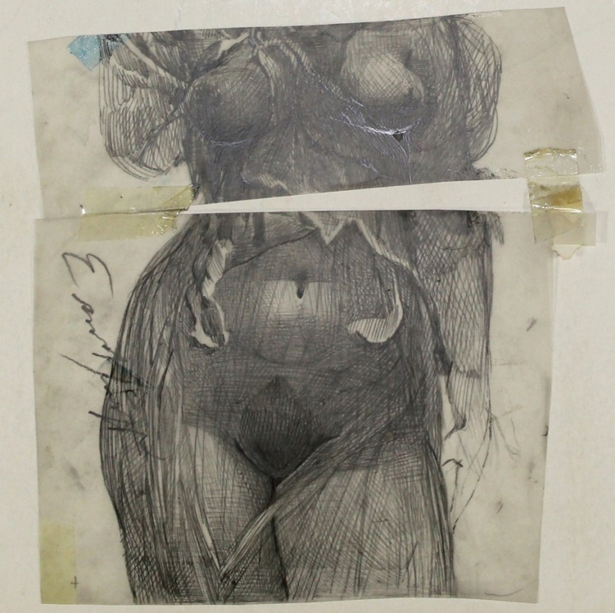Ernst Fuchs – Weiblicher Torso , nd dessin au crayon (Galerie-F)