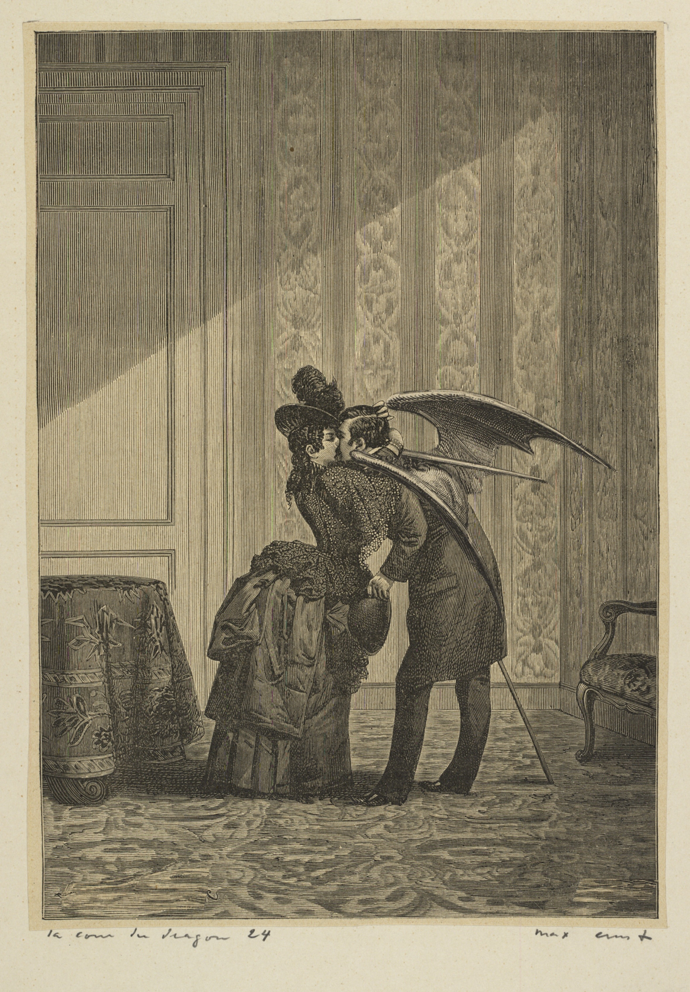Ici aussi Ernst joue avec les corps et leurs positions, insère l’ambigüité et l’érotisme.