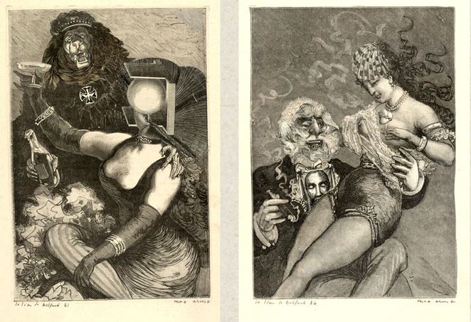 Comme ses compagnons surréalistes, Max Ernst est revenu traumatisé de la Première Guerre mondiale. Comment reprendre place, comme si de rien n’était, dans une société qui met tout en œuvre pour oublier ou nier les horreurs et les destructions ? En faisant preuve de dérision, en construisant un univers Onirique, Allégorique et poétique, qu’il pourrait apparaitre presque « délicieux » au sein d’une fin du 19ieme romantique feutrée et de n’y évoquer que la terreur , l’effroi, la cruauté, les tortures, la douleur, La nature de l’homme, la sexualité, la brutalité, qui sont si lissement niées dans les salons confinés, mais qui se révêlent bien existantes derières les murs et portes. En cela les tableaux et événements qui se déroulent au fil des pages d’une semaine de Bonté forment un contraste éclatant avec le titre et sont l’incarnation de sa volonté de réduire en miettes les bien pensants. La semaine commence un dimanche, , les salons cossus hébergent un peuple qui grouille : mais ils sont limaces, queues de diable, reptiles/ le message est assez clair et éloquant !
