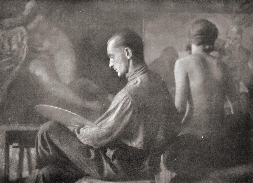 Franz Fiedler- Painter with model Dresden, 1920s(bromoil)