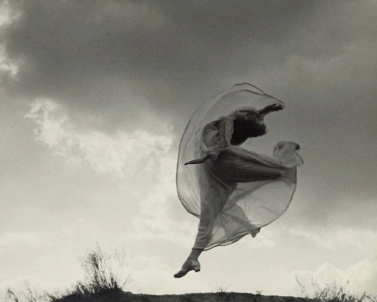 Franz Fiedler- the dancer sarah jankelow jumping in front of clouds, 1926