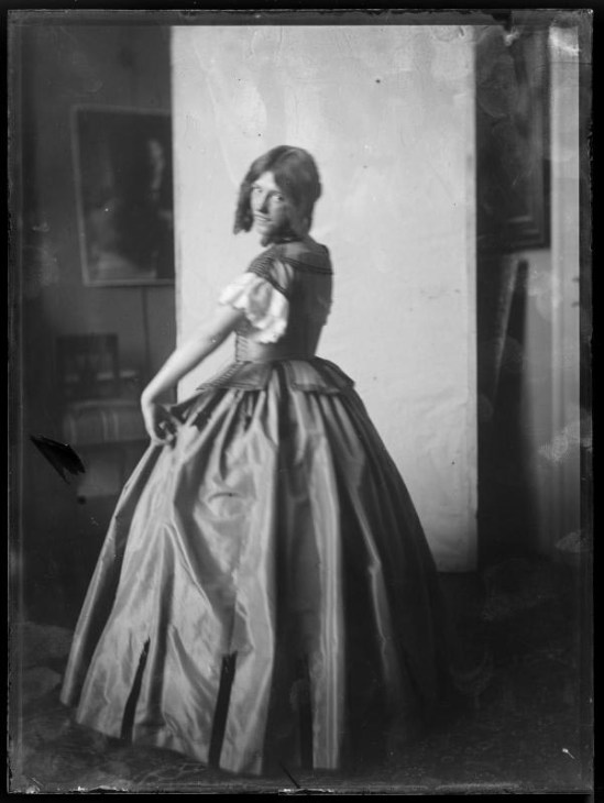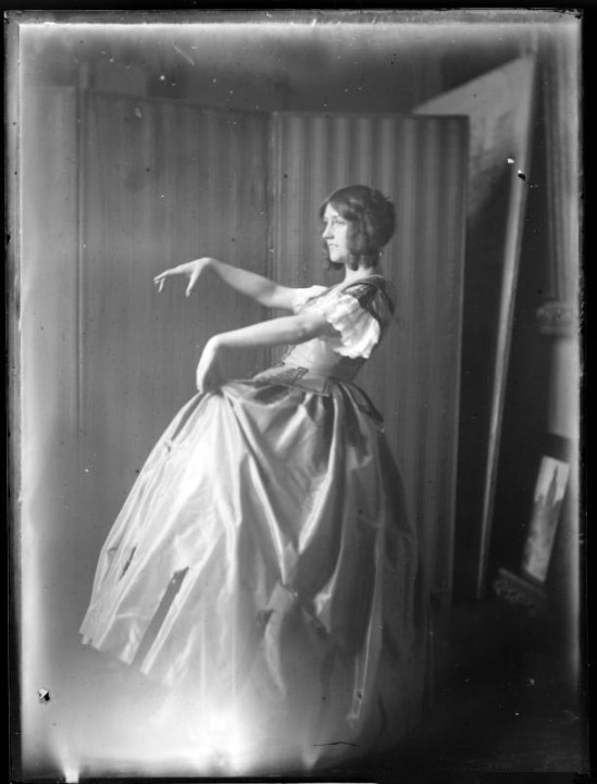 Ferdinand Schmutzer-The dancer Gertrude Barrison in Biedermeier costume, standing whole figure.1907