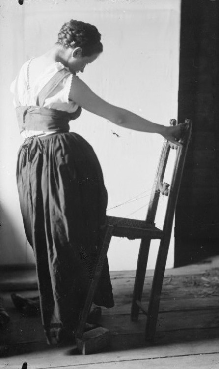 Ferdinand Schmutzer-White seamstress in dutch dress in dark room working at the window..,1903