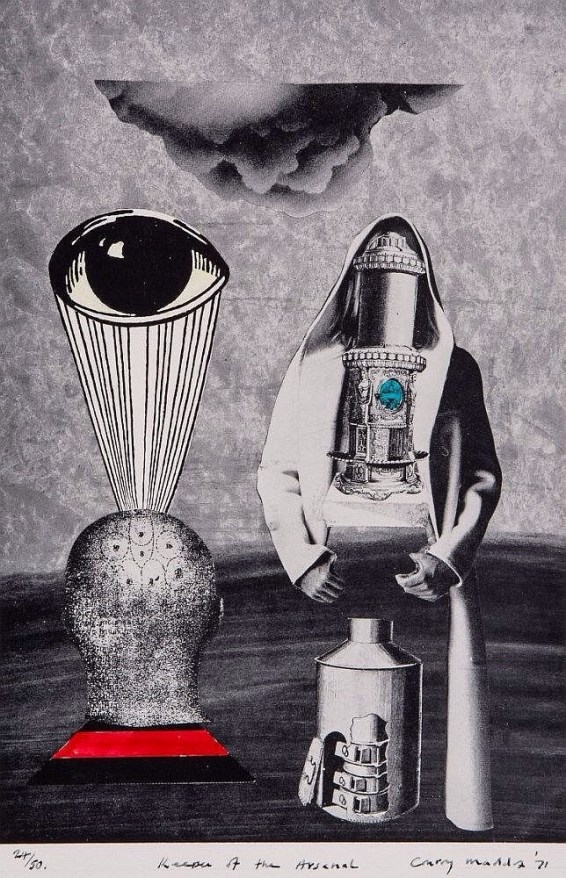 Conroy Maddox (1912-200)- Origin of the Family and Keeper of the Arsenal ,collage  with hand-colouring, 1940-71