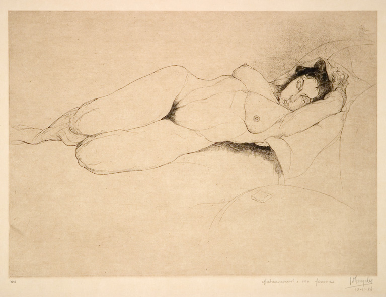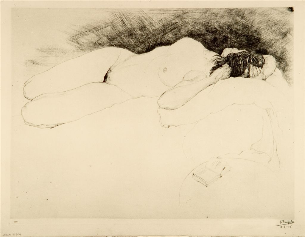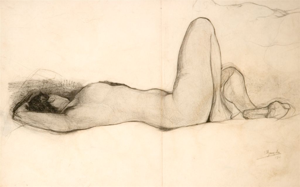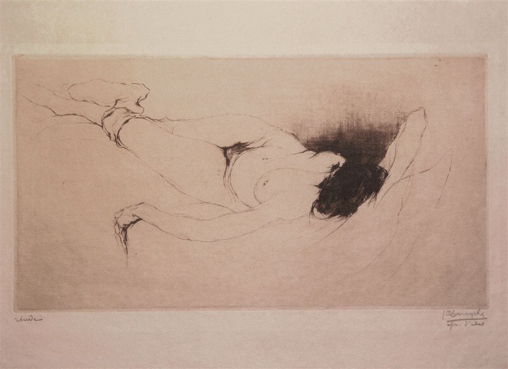 En 1914, il s’enfuit à Londres.Là, il rencontre son épouse Raphaëlle Il dessine dans l’atelier de Whistler, et ses dessins sur le thème de la guerre qui le ronge beaucoup, lui sont achetés par M. De Graaff (grand collectionneur/ collection De Graaff-Bachienne). Durant les dix prochaines années Jules produira beaucoup de nus ( que ce soit des encres ou s), ce qui nous intéressera plus particulièrement aujourd’hui bien sur, comme à, notre habitude, et que je vous proposerai.