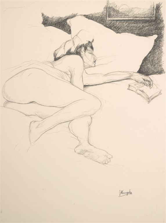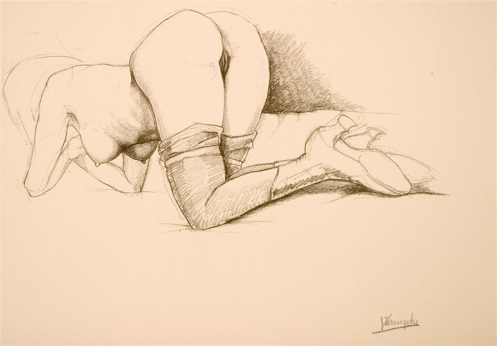 Aujourd’hui ceux sont donc les nus que je vous présente. d’une grande pureté et simplicité. Ils sont toujours d’une grande délicatesse et dans les pauses et dans le coup de crayon. On peut noter qu’il est fort probable que Jules fût quelque peu fétichiste des bas et bottes, ainsi que s… bons nombres de ses modèles en portent. Elles sont le plus souvent alanguie, éveuses, ou un livre à la main.