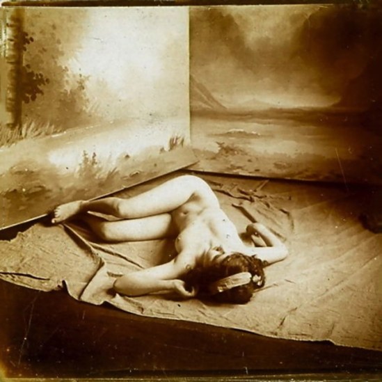 Uncredited – nude woman lying before 1900 [crop from This plaque de verre stereo]