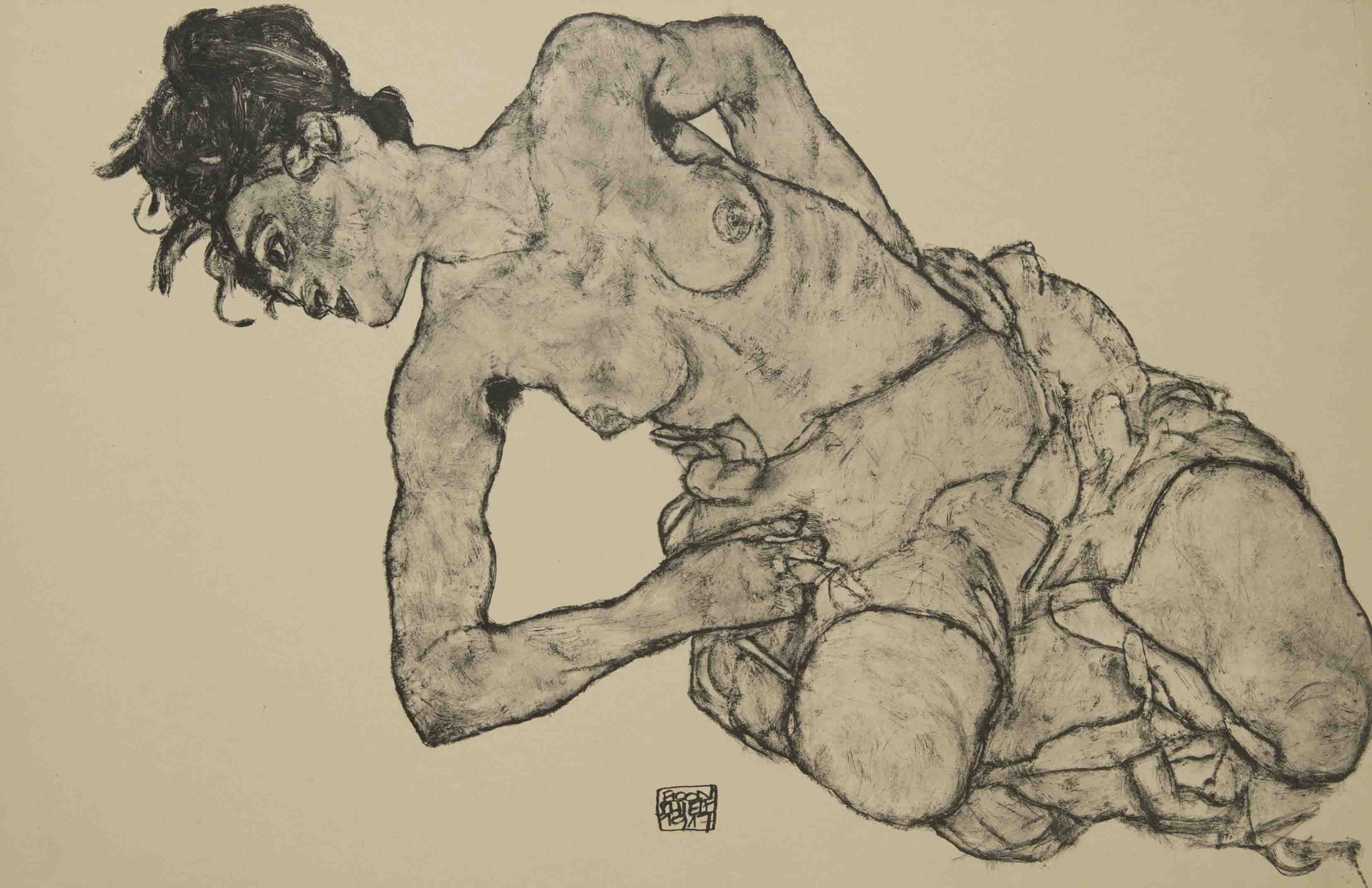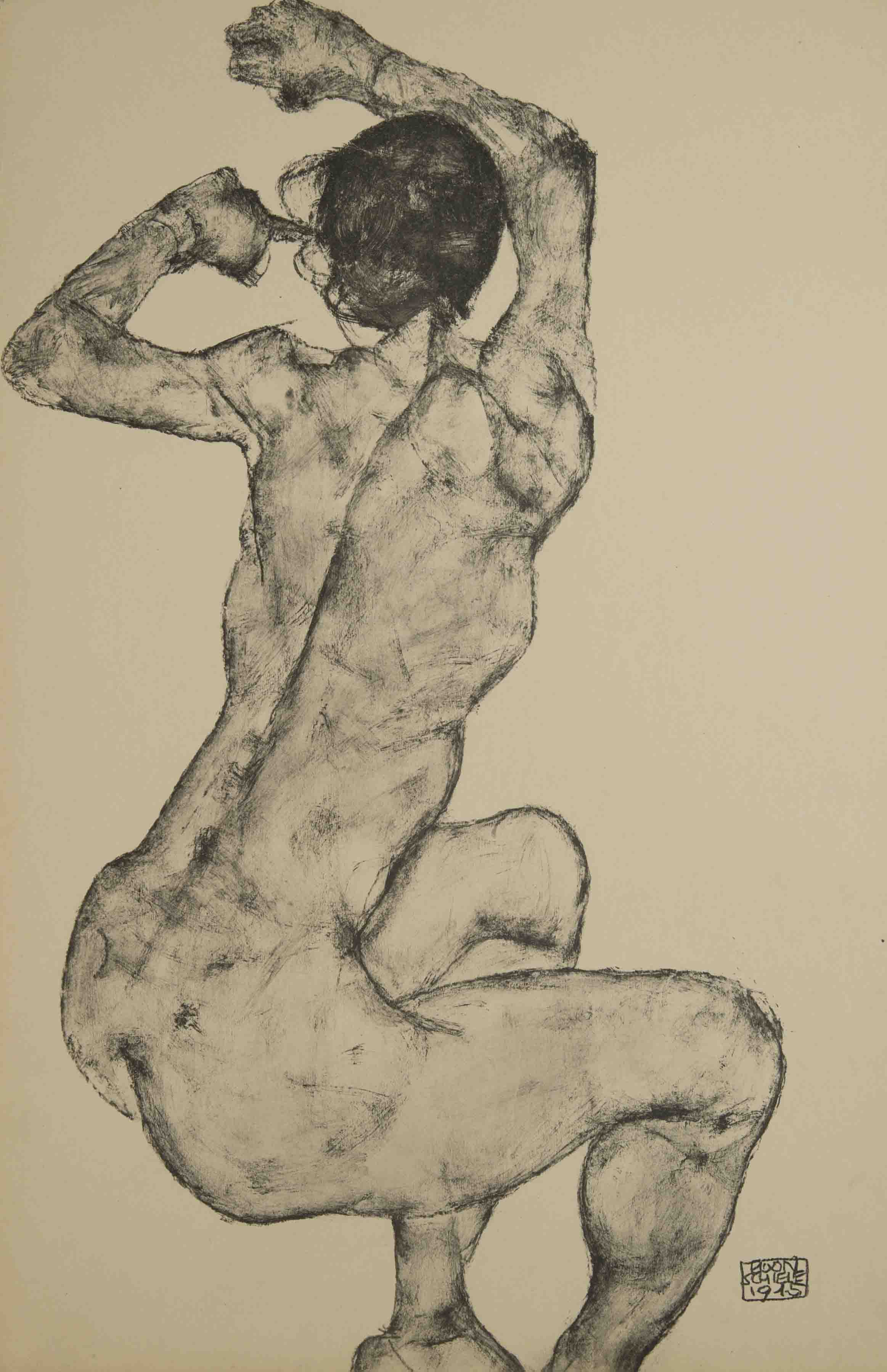 Egon Schiele- Selbstbildnis hockend (Auto-portrait accroupi), nd