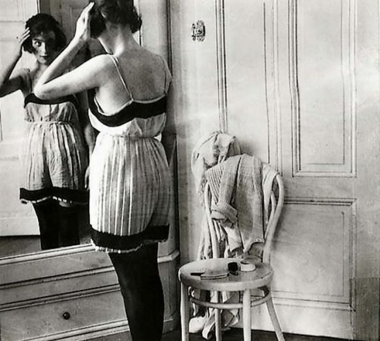 Jacques Henri Lartigue – Bibi sur les toilettes à l_hotel des Alpes,Chamonix, 1920 pendant leur voyage de noces