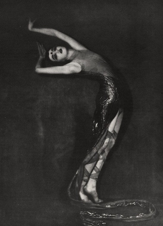 Maurice Golberg- Ryllis Barnes Simpson aka Hasoutra, ( Hindu dancer) posing as the snake woman, New York, 1926