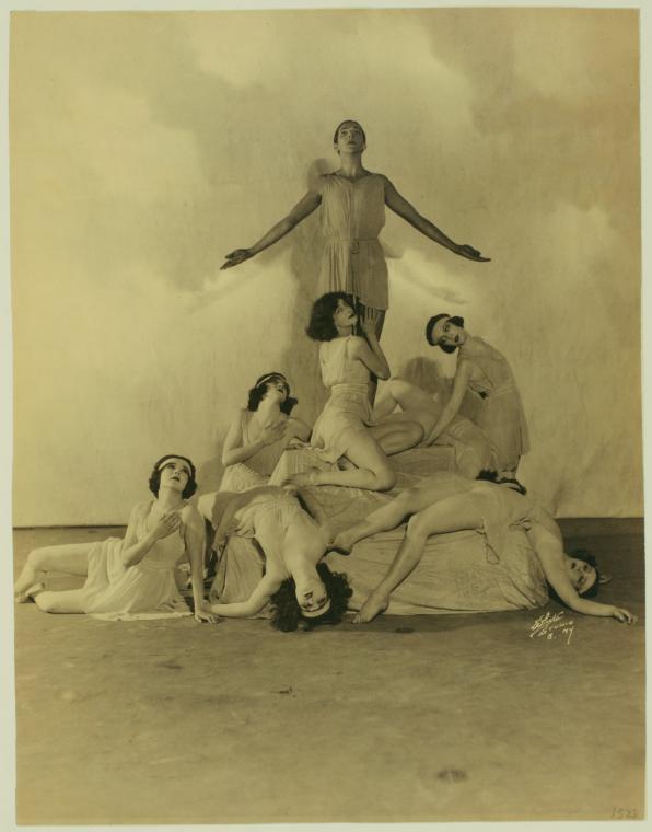 White Studio (New York, N.Y.)- Doris Humphrey, Charles Weidman and Denishawn dancers in Sonata Tragica,1923 , Doris Humphrey’s first programmed credit for choreography. Other dancers are Louise Brooks, Lenore Sadowska, Anne Douglas, Lenore Scheffer, Geordie Graham, and Lenore Hardy.